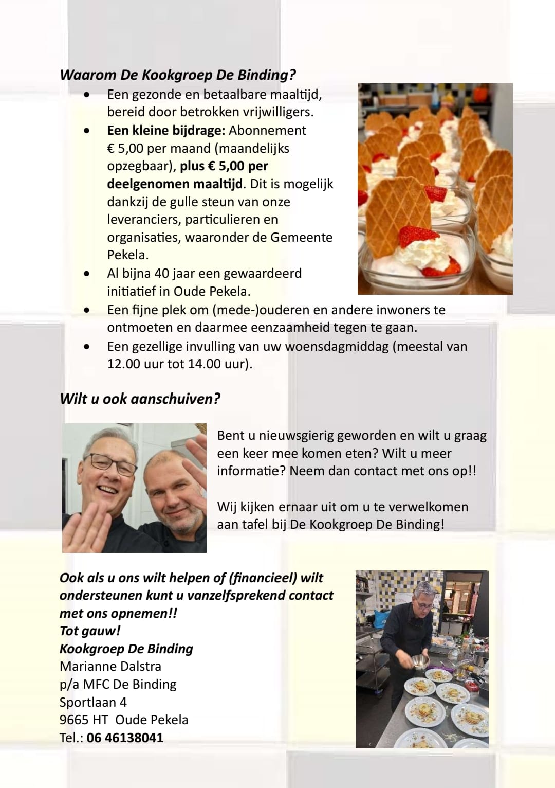 Wilt u een keer mee komen eten? Of meer informatie? Neem dan contact op! via 06-46138041