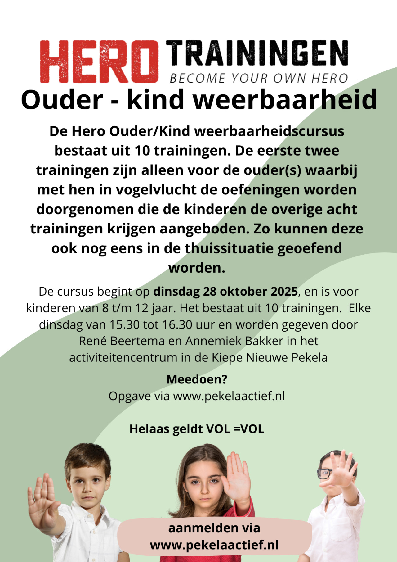 De ouder en kind weerbaarheidscursus bestaat uit 10 bijeenkomsten, De eerste twee bijeenkomsten zijn alleen voor de ouders waarbij met hen in vogelvlucht de oefeningen worden doorgenomen die de kinderen krijgen aangeboden.