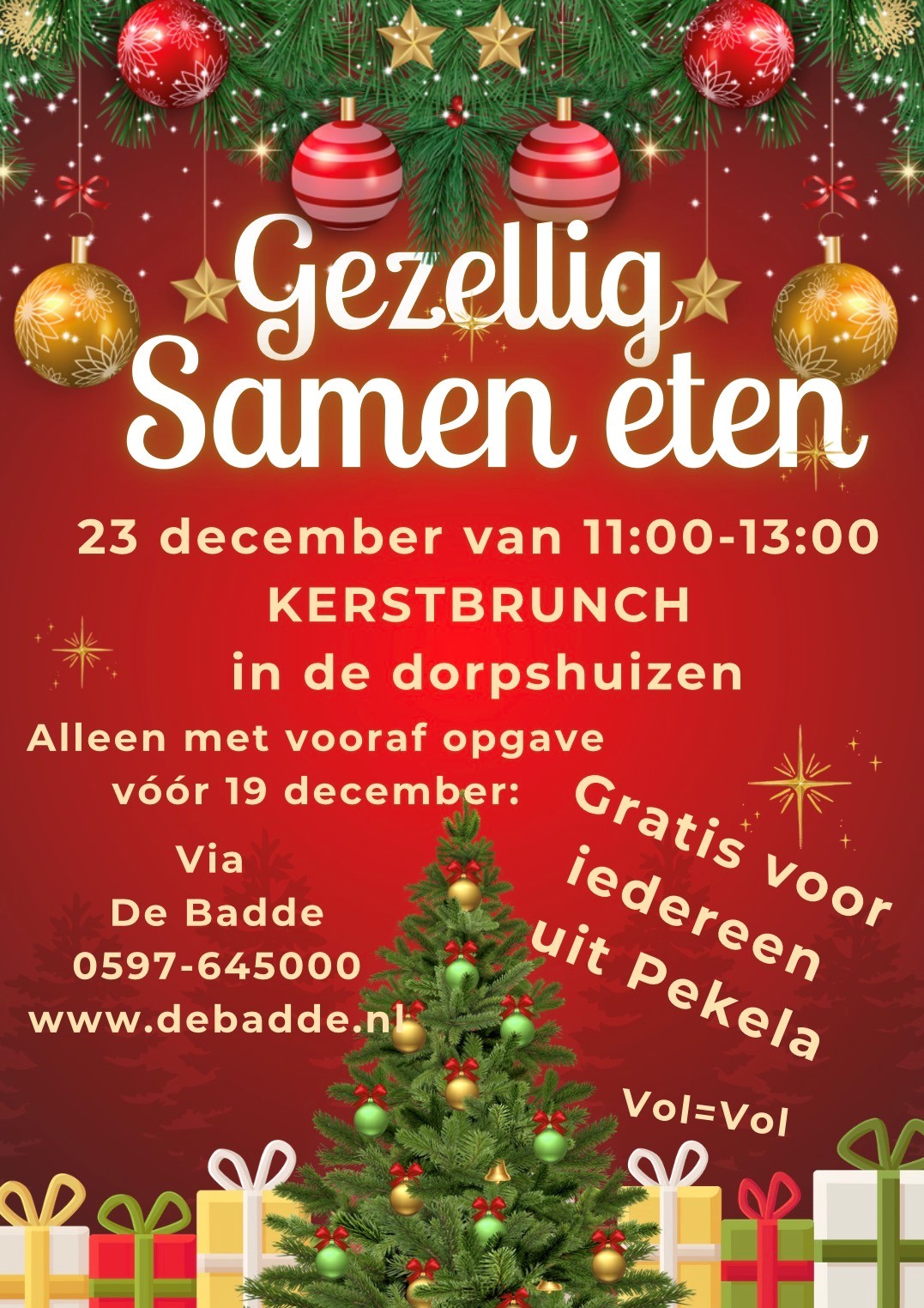Op 23 december van 11:00-13:00 organiseren we een gratis kerstbrunch voor iedereen uit Pekela! ![]()